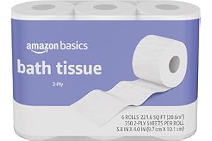 Amazon Basics 2-Ply Toilet Paper, 6 Rolls (1 Packs of 6), Equivalent to 25 regular rolls